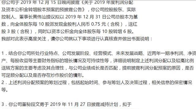 之后,美联新材又马上收到了深交所的关注函,要求公司关于这次年报的股利分红说明多个问题,这上面公司的回复大家也不要信一个字,因为全部是套话、官话,就是一个走过场的形势而已。
