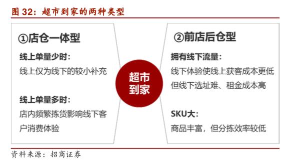 前置仓到家VS超市到家:超市到家可分为店仓一体型与前仓后店型。店仓一体型指在店内进行到家业务的拣货,如果线上单量过多,则店内的频繁拣货会严重影响线下客户的消费体验。