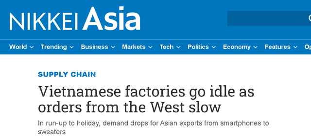 但早在今年8月30日,越南本地就有媒体已经注意到了此事。越南每日快讯(VnExpress)网站当时就报道了越南工厂接到的订单出现明显萎缩,不得不进行裁员的事情。