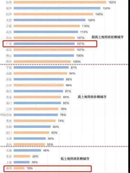 3、摆脱土地财政。在广东,虽然深圳房价最高,但深圳却是土地财政依赖度最低的。反而被认为房价“相对合理”的广州,土地财政依赖度高的惊人。