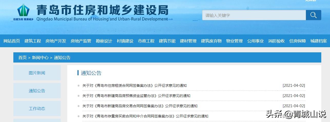 清明节前的最后一天,4月2日,青岛住房和城乡建设局连发4道新政征求意见,这是青岛对楼市监管力度逐渐加强的一个信号,也将对买房者、租房者产生较大的影响: