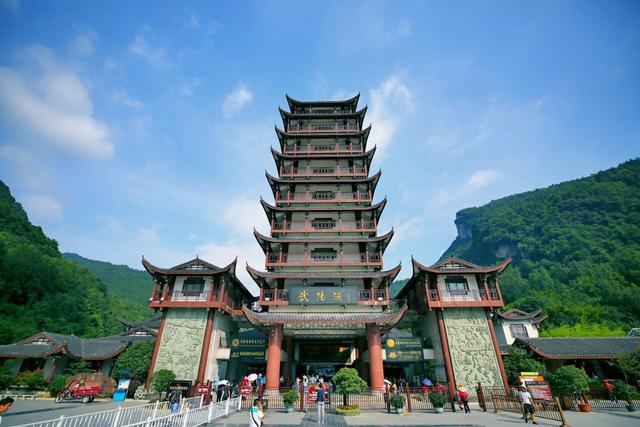 百龙天梯垂直高差335米,运行高度326米,由154米的山体内竖井和172米的贴山钢结构井架组成,有着“世界第一梯”的美誉。百龙天梯的建成实现“山上游,山下住”的目标,将袁家界、金鞭溪、天下第一桥、迷魂台等绝世美景从幕后推向了前台,解决了多年困扰景区的交通瓶颈问题,正因为有了它,也才让我们一天游完山上武陵源的愿望得以实现。