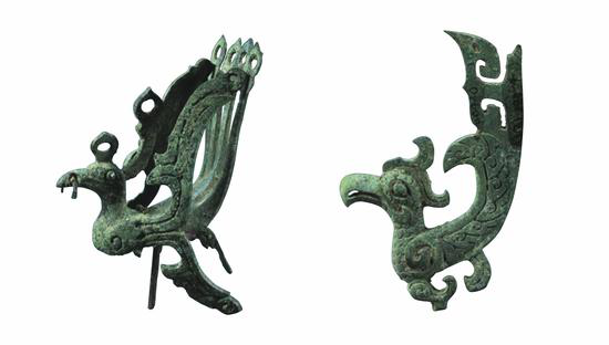 口说无凭,他们似乎还签下了协议。在一件金杖上,刻有这样一幅图画:四根羽箭平行射入两个人头之中,箭头分别穿入两条鱼的头部,箭尾则是两只展翅的飞鸟。一个最新的说法是,两个人头代表着“笄发”和“辫发”两个部族,鱼和鸟是它们的图腾,羽箭则相当于誓言。这是“笄发”和“辫发”们刻下的契约,写下的是庄严和肃穆。