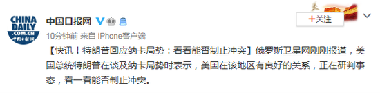 俄罗斯卫星网刚刚报道,美国总统特朗普在谈及纳卡局势时表示,美国在该地区有良好的关系,正在研判事态,看一看能否制止冲突。