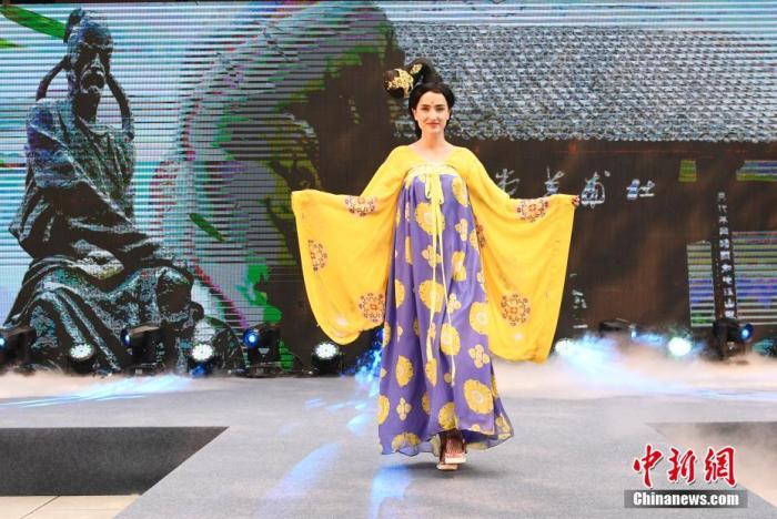 资料图:5月23日,中国丝绸博物馆,一位汉服爱好者在展示宋制汉服。 中新社记者 王刚 摄